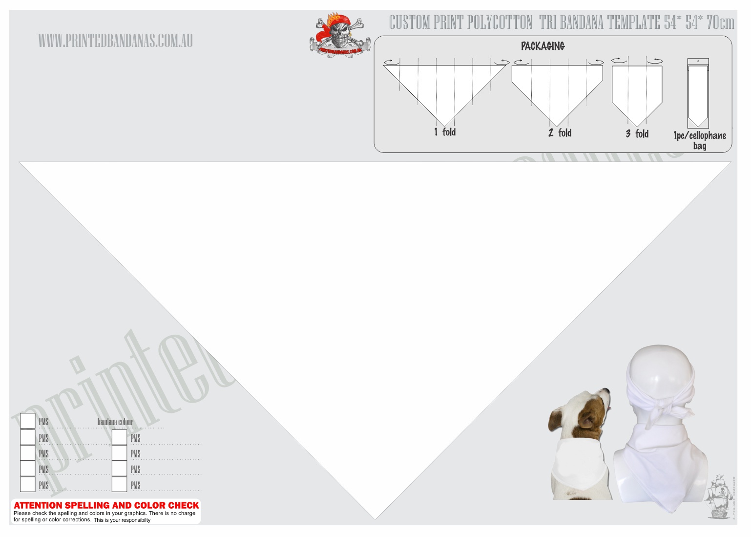 Also list as much detail as possible how you want the tri/pet bandana design finish to look and we will have our designers simulate up  your design,